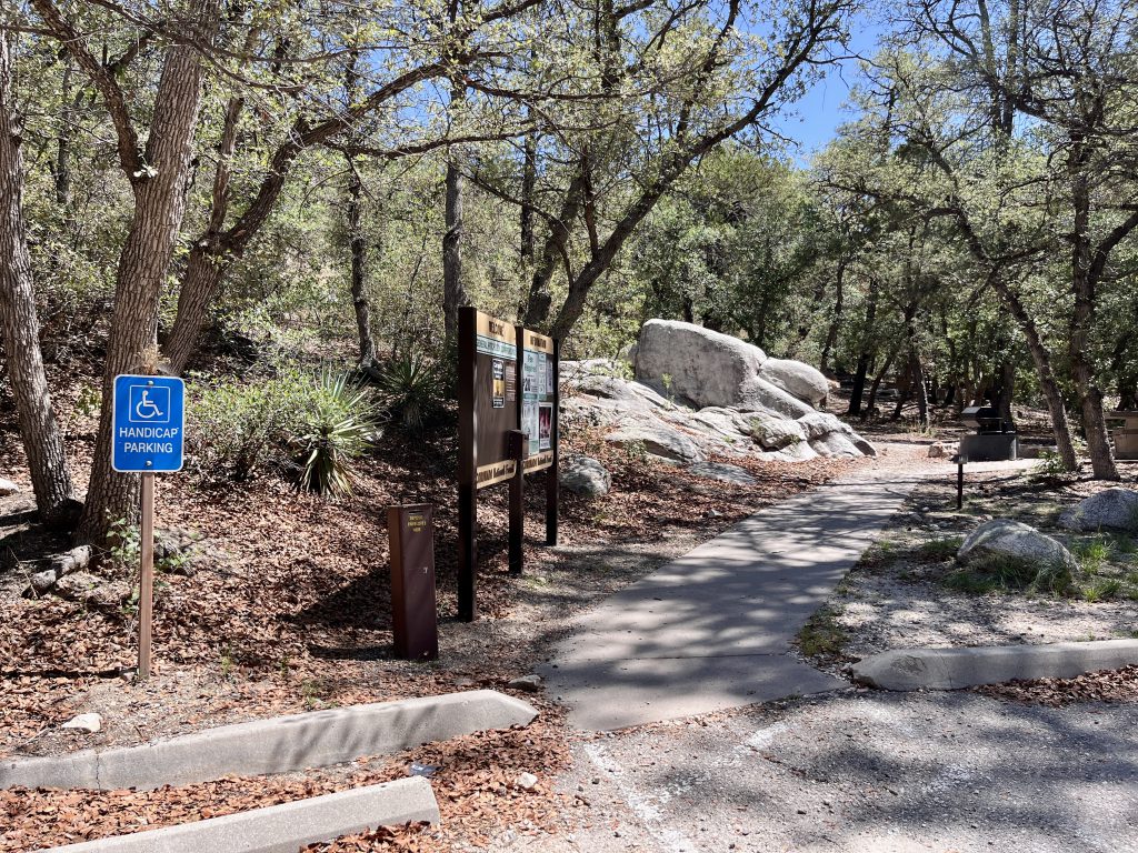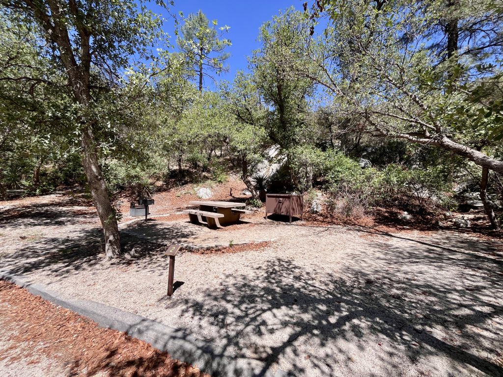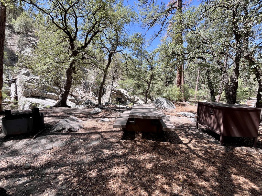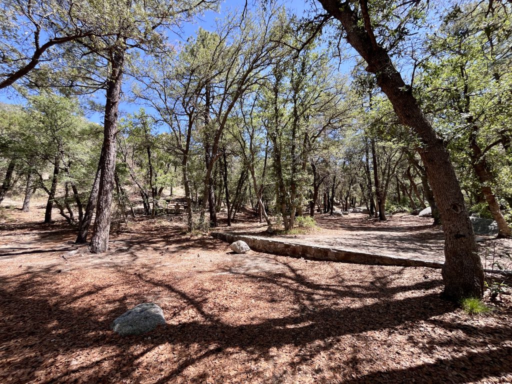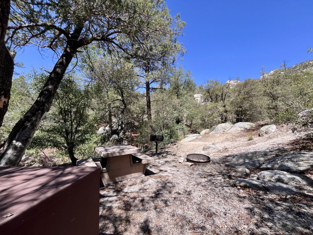 This small, sheltered campground is tucked away just off the Catalina Highway, along the rocky streambed that forms the floor of upper Bear Canyon. Campsites are nestled under a canopy of ponderosa pines, junipers and oaks. Some sites are located right along Bear Creek among large rocks. The Creek generally only flows during rainy periods or during the Spring snowmelt, but be vigilant of flash floods.