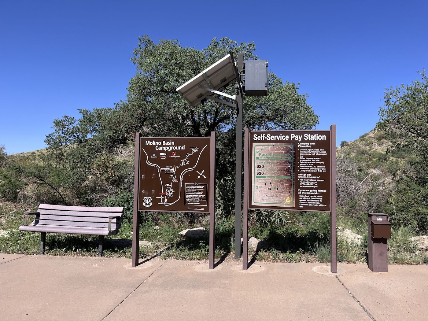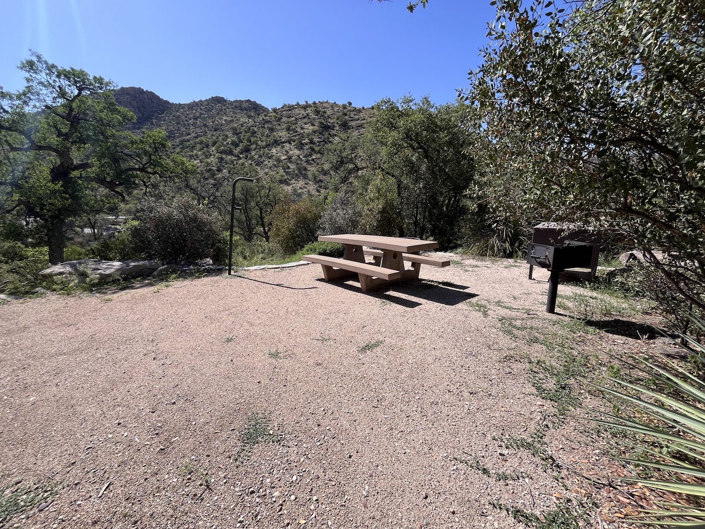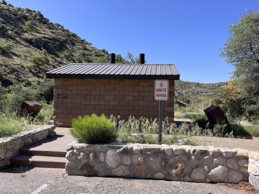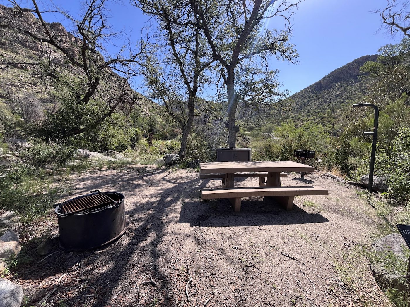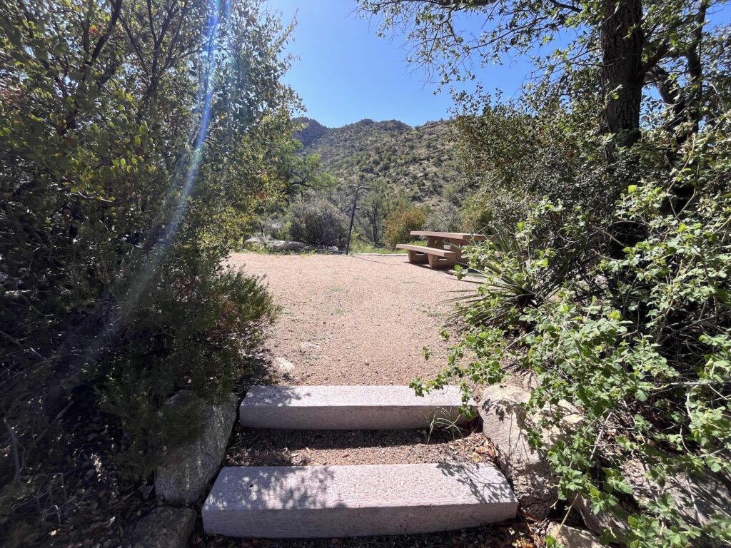 This facility has a few dozen individual campsites available on a first come, first served basis. Campsites sit amid a high desert oak scrub ecosystem at an elevation of 4,410 feet on the slopes of the Santa Catalina Mountains. Along the banks of Molino Creek, which flows during and immediately after rain or snowmelt, species such as cottonwood, Arizona live oak and mesquite provide a scenic setting. Views are dominated by rugged, rocky hills. Colorful wildflowers bloom in spring.