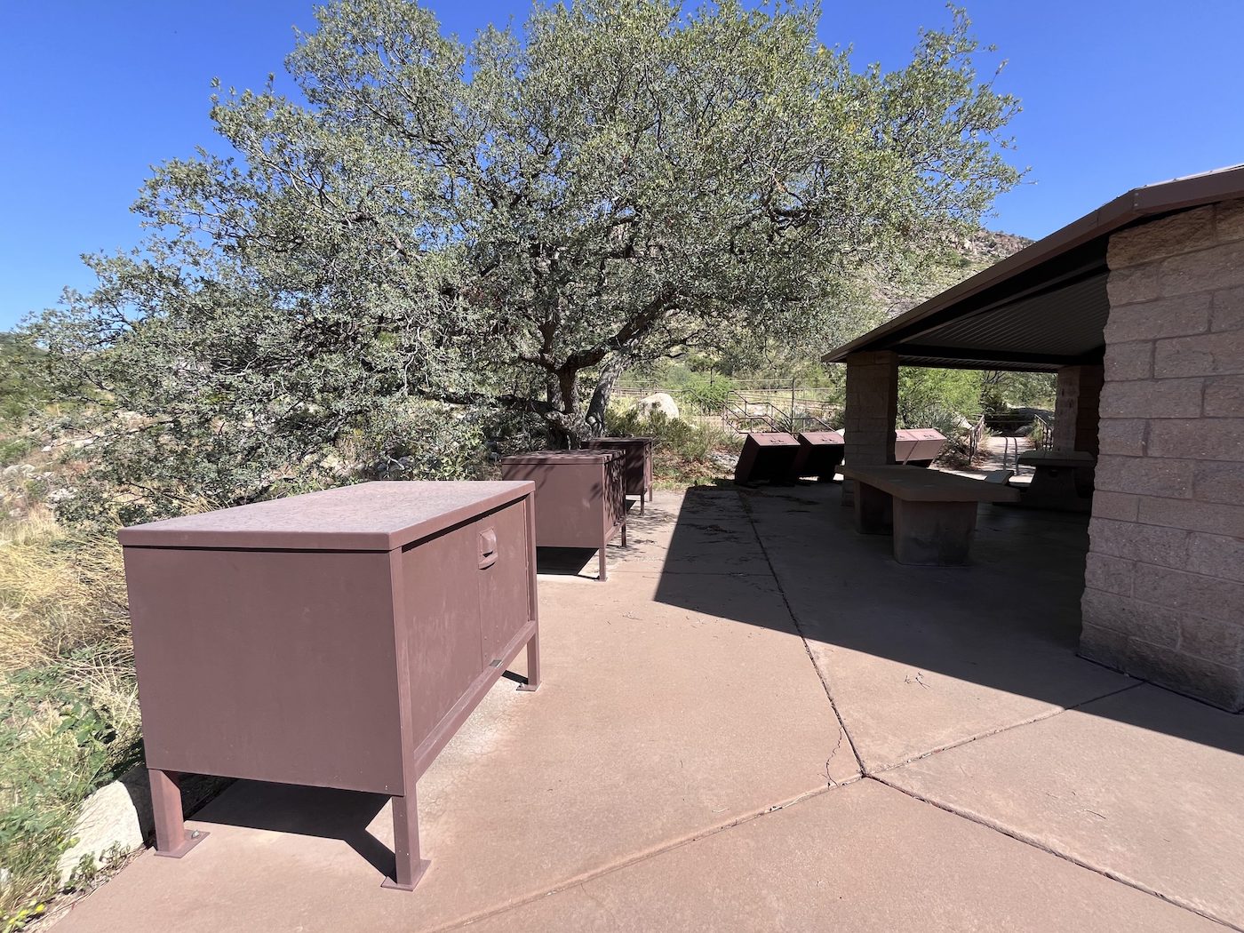 The group area is accessible with a paved walkway, and is equipped with a large ramada covering several picnic tables, two serving tables, grills and food storage lockers for bear safety.