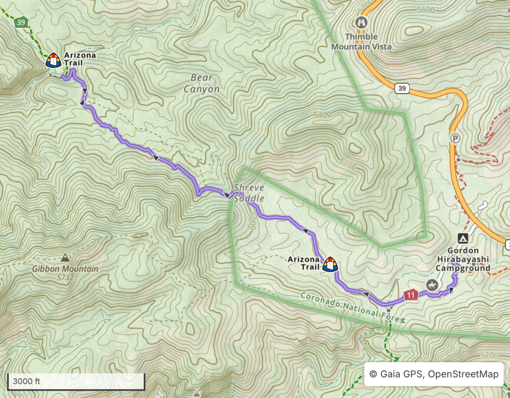 From the front parking lot of Palisades Visitor Center, turn right heading down Catalina Highway. Continue approximately 12.5 miles and look for a turnoff on the righthand side for Gordon Hirabayashi Campground. Parking for the trailhead is available just past the camp host site on the left side of the road.